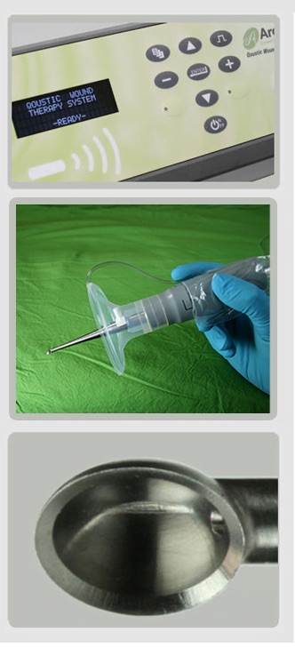 Qoustic Wound Therapy System: The QWTS is the only ultrasound wound therapy device that operates at 35 kHz, which is considered the “Sweet Spot” for bioburden control. The patented dome-shaped, sharp-edged Qoustic Qurette probe gives clinicians more control for gentle and selective removal of necrotic tissue. It also provides therapeutic maintenance debridement by targeting the low frequency ultrasonic energy through fluid solution to the wound bed. Our system has had success even with the most difficult wounds.